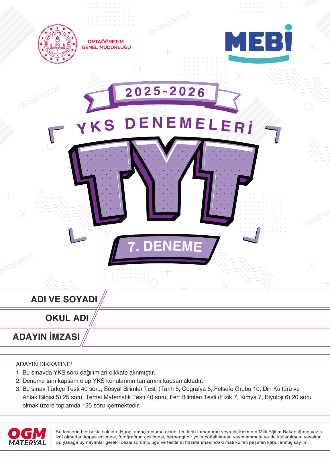 MEBİ YKS Denemeleri TYT 7. Deneme