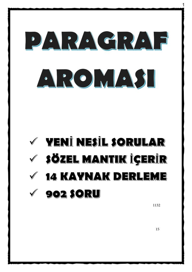 | Yayınevi | PARAGRAF SORU AROMASI |