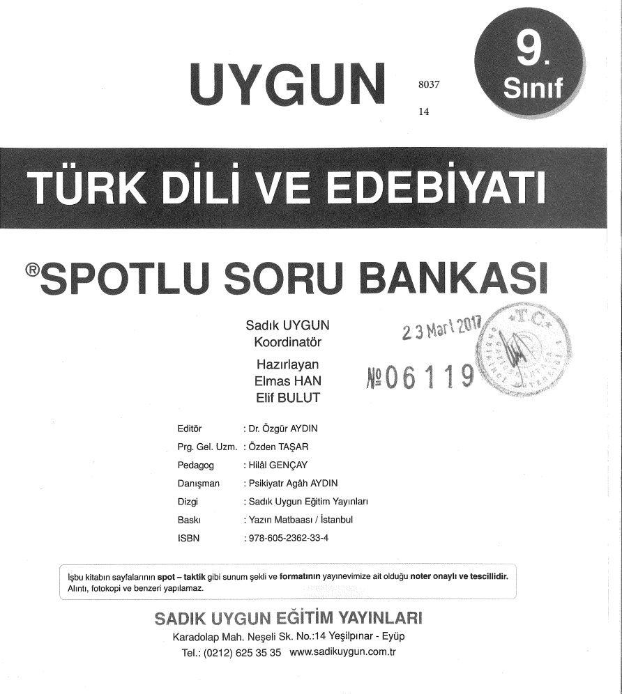 | Yayınevi | SADIK UYGUN YAYINLARI |